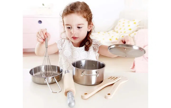 Suitable for mini aspiring chefs above three years old, forget about cheap plastic cooking sets and get them Hape’s adorable fun-sized stainless steel and wood cooking set instead.