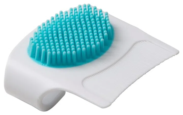 If your teeny tot suffers from cradle cap, consider this gentle rubber scalp brush and comb. It's designed to help delicately remove excess flakes from the scalp. Simply slip the brush comb over your hand and let it work its magic.