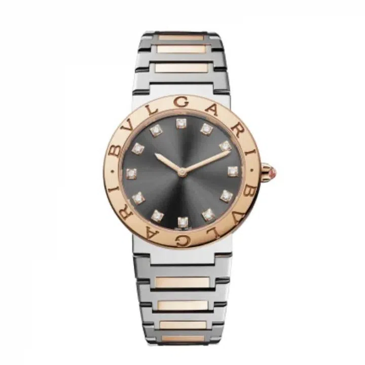 Bvlgari Lady 33mm steel and 18K rose gold quartz watch with diamonds, $12,300, Bvlgari