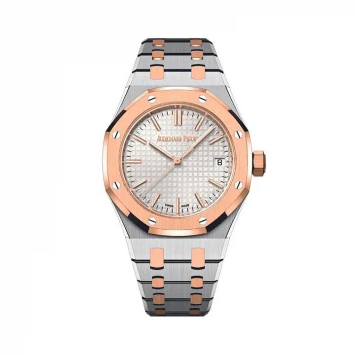Royal Oak 37mm “50th Anniversary” stainless steel and 18K pink gold self-winding watch, $42,700, Audemars Piguet