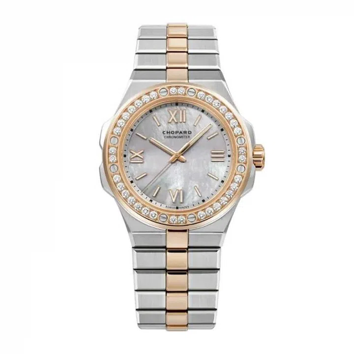 Alpine Eagle Small 36mm Chopard Lucent Steel A223, rose gold and mother-of-pearl self-winding watch with diamonds, $31,300, Chopard