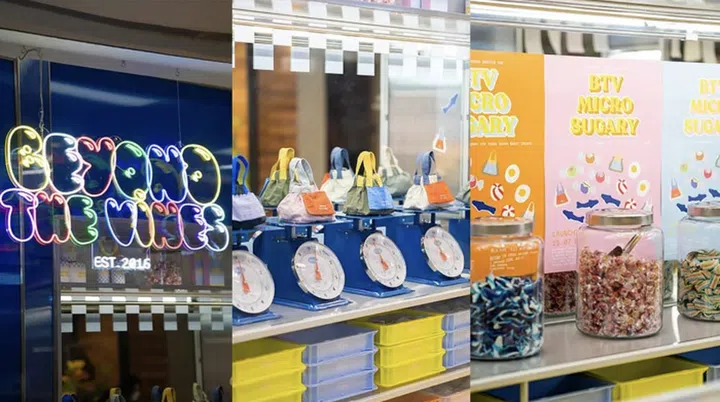 concept titled “The BTV Micro Sugary”. Drawing inspiration from a candy dispensary, the space will feature custom pastel-coloured crates and jars filled with childhood favourite candies like salt water taffies and peppermint twists. Happening from now to 29 July 2022, The BTV crew, who will be dressed in neomint-coloured jumpsuits, will also be giving out complimentary packs of mixed candies to customers who visit setup and have made a purchase.