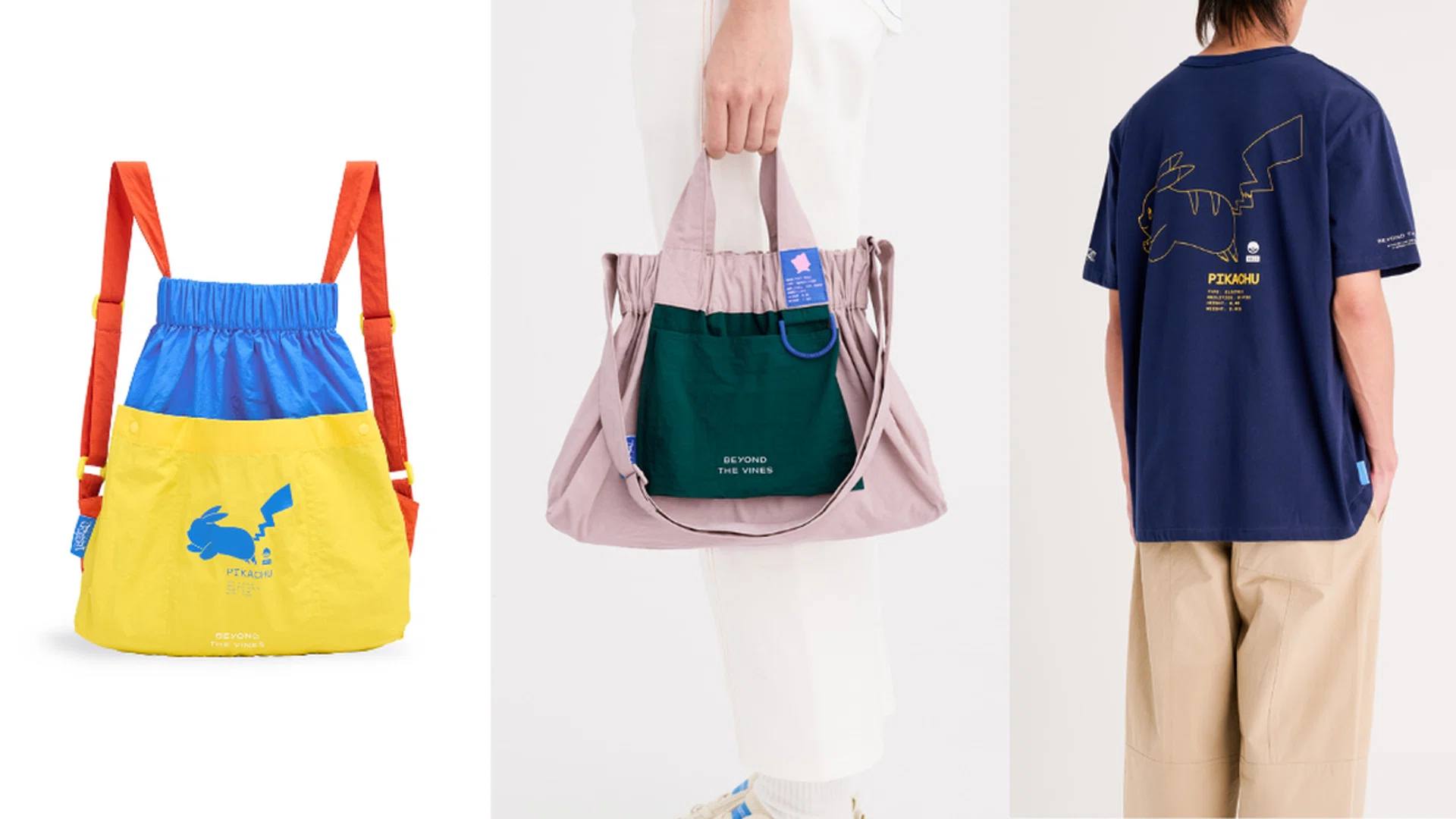 Bags include Beyond The Vine's Canvas Carryall 01 and 03, as well as the fan-favourite Dumpling Bags, decked in the brand's signature colour-blocking. The three XS Dumpling Bags, for instance, come in different colourways inspired by different Pokemon — Eevee, Jigglypuff and Pikachu. Look closely and you'll notice that each bag is labeled with the names of each Pokémon woven on the product label, along with its Pokedex number, height, and weight.