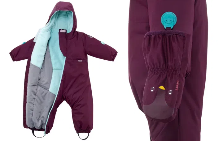 This suit also features a Lugiklip system to attach Wedze baby mittens (to be purchased separately), while the elasticated cuffs and hem help keep snow out.