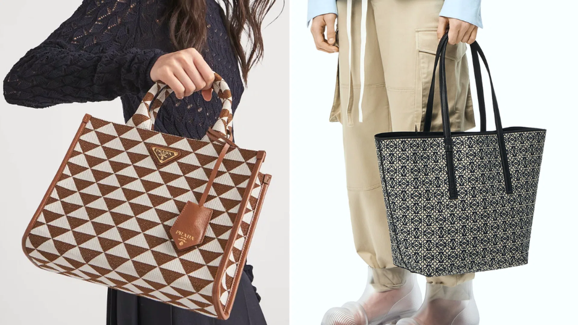 2. T tote bag in jacquard and calfskin, $2,400, Loewe