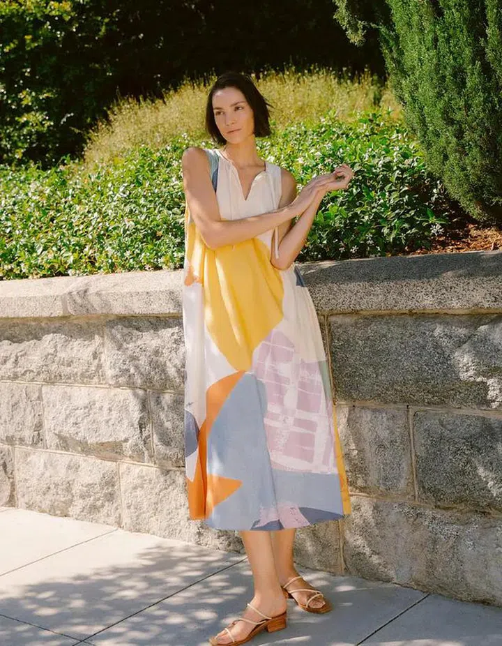 Known for their exuberant prints and patterns, Our Second Nature delivers yet another summer dress hit with this linen number. Plus, the use of linen is great for our hot weather, as it helps regulate your body temperature.
