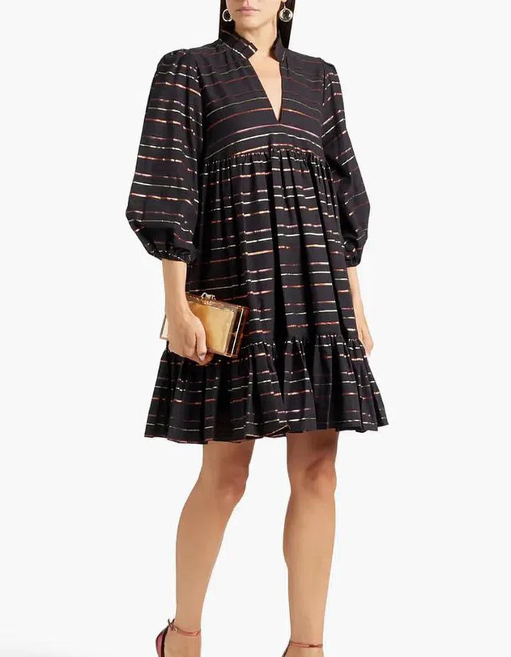 Gathered Metallic Striped Cotton-Blend Mini Dress, US$150 ($206), Black Halo at The Outnet