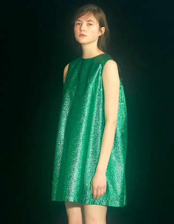 This Korean designer has dressed BTS and Doja Cat, and now, MINJUKIM’s going make sure you can party with ease, thanks to this cocoon-shaped mini dress in a gorgeously lush shade of emerald fabric. Accentuate it with statement earrings and a pop of colour on your lips.