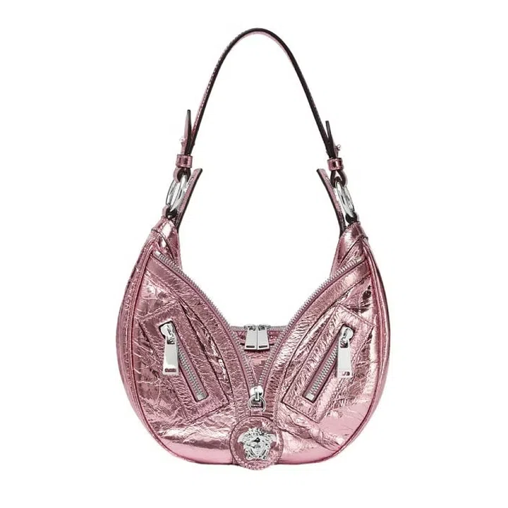 Expect a profusion of Barbie-core looks in this outing: think mini skirts, sharply-tailored skirt suits, stacked loafers and accessories in glitzy metallic leathers. The butterfly-loving Lipa also mined inspiration from the Versace archives for the print, reviving the pattern that the late Gianni Versace used for the Spring/Summer 1995 collection. Below, we suss out some of our favourite picks.
