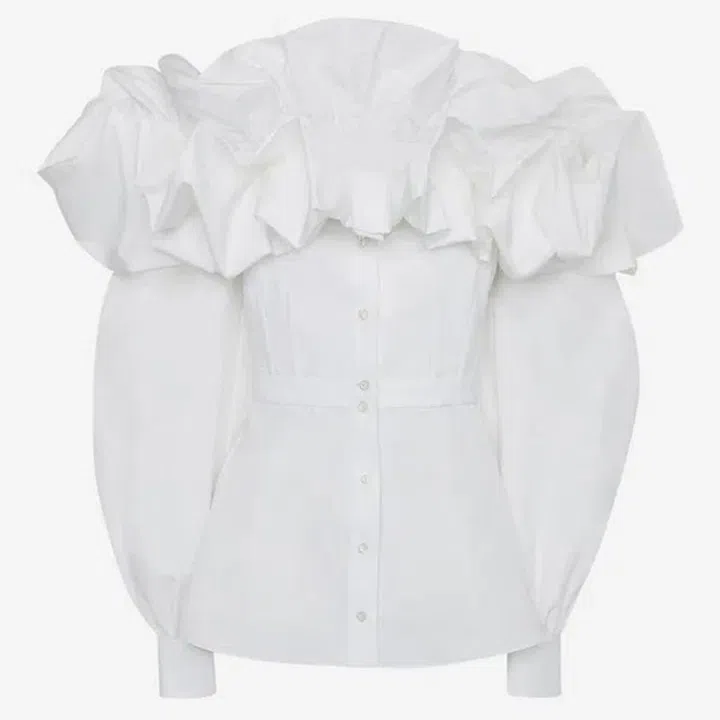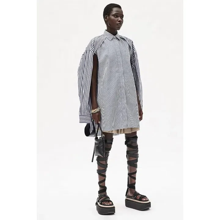 Whoever deemed button-down shirts stuffy should check out the latest offerings, as designers have taken advantage of the in-between season to loosen up this corporate staple. And what a slew of options await. Christopher John Rogers’ extra-long shirt features exaggerated collars while Sportmax has elongated its shirt sleeves, raised the collar, and layered a cut-out t-shirt on top. Sacai, meanwhile, turned a striped version into an intriguing proposition with sleeves that morph into an attached cape.