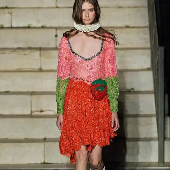 It’s never too early to have a taste of summer with this season’s crop of fruit motifs and prints. Look to Carolina Herrera for a beautiful off-shoulder frock in a red cherry print, or Moschino’s mini sheath dress with green cherries for a dollop of cheeky Pop Art vibes. Or go for a subtler approach with Gucci’s sorbet-hued sequin and lace dress paired with a strawberry bum bag. Whatever your pick of apparel or accessory, prepare for a juicy time.