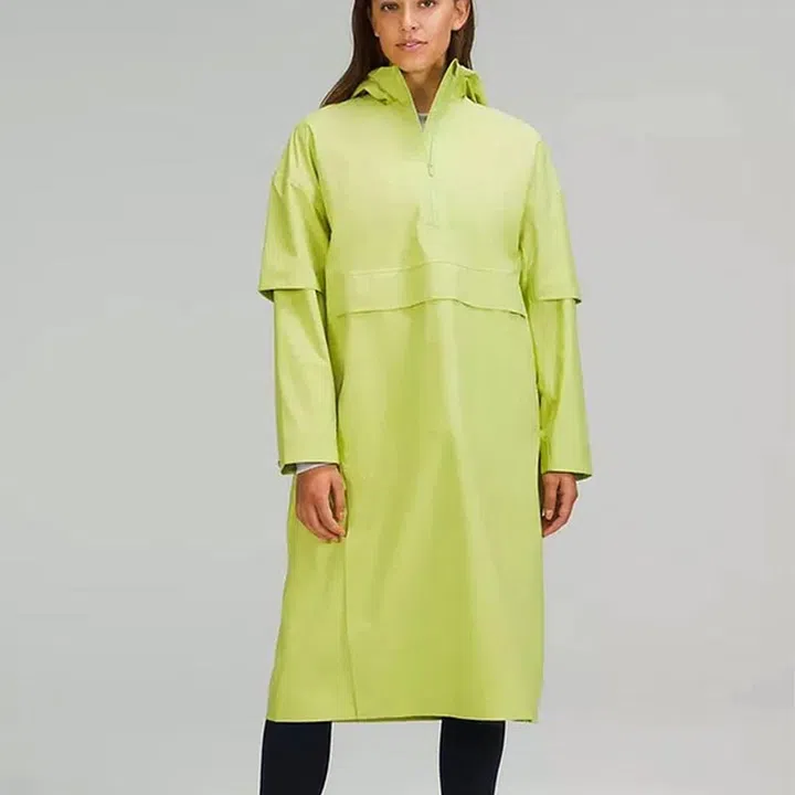 To inject some sunshine into your rainy day outfit, go for this wasabi green rain poncho from Lululemon. Built with a cinchable hood, this poncho is also available in black.