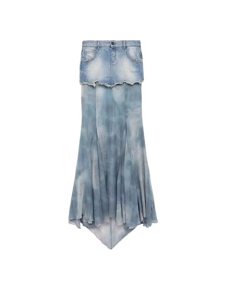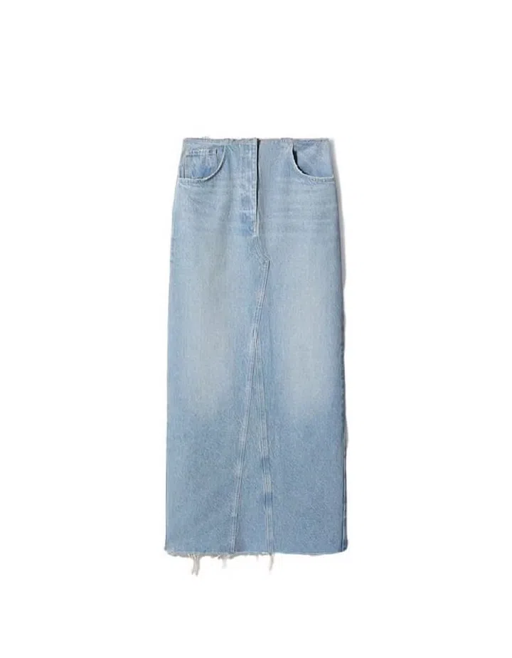 Rewind to a year ago and mini skirts were one of the most talked about fashion items of Spring/Summer 2022. Most notably, Miu Miu’s pleated micro mini skirts were red hot and seen on the hips of some of fashion’s biggest names like Hunter Schafer, Emily Ratajkowski and Dua Lipa, as well as dudes like Manu Rios and Conan Gray. But a new contender is aiming for the top spot occupied by the itty-bitty skirt this season. Enter the denim maxi skirt trend which is sweeping retail floors and street style.