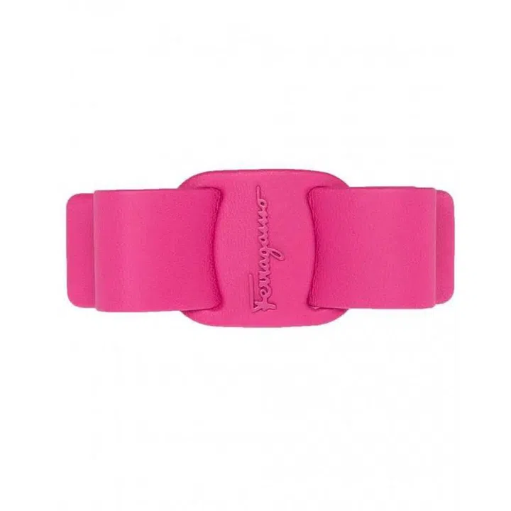 This hair clip is a nod to the immensely successful bow motif found on the Vara shoe, which has appeared on the women’s collection of shoes since 1978. Made from leather and featuring Ferragamo lettering on its buckle, this hot pink design would jazz up any hairdo.