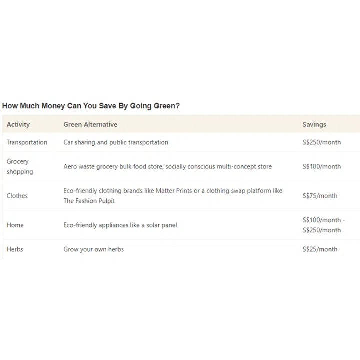 Supporting local businesses is good for the environment because they often have a smaller carbon footprint compared to larger companies. This is especially true if you account for the logistics of transporting products across borders. The good news is that there are many green and sustainable businesses right here in Singapore. Whether it’s a mama shop or a clothing store that sources material locally, consider swapping the usual mainstream store with a local, eco-friendly brand instead. While on the surface these shops might seem slightly more expensive, the quality of products and friendliness of staff is usually better. If you're concerned about costs, there's always a grocery credit card to earn cashback on this monthly expense.