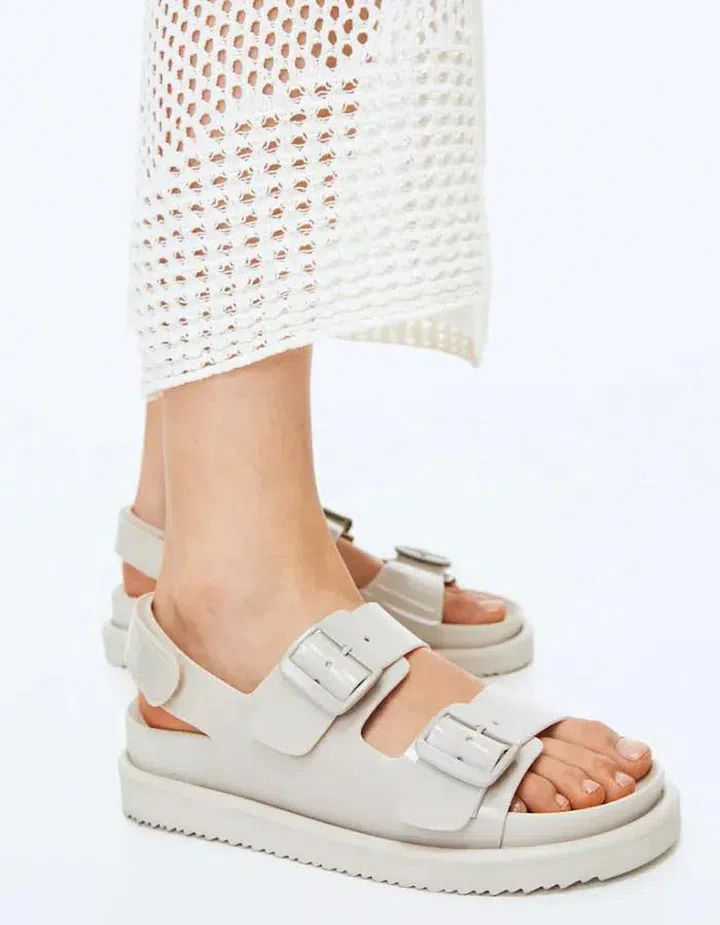 These are the poolside shoes of our dreams! Just the right blend of comfort, versatility and design to go with all of our swimwear looks, these sandals can also be worn with light blue jeans for a quick brunch run.