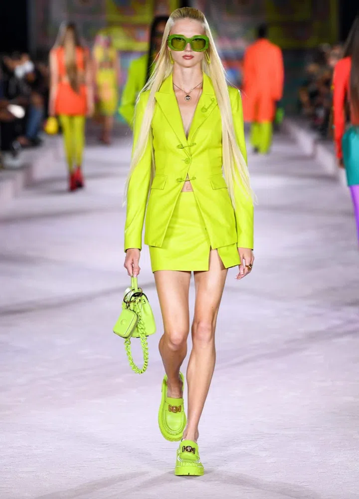 That iconic fashion moment lives on in the Spring/Summer 2022 season which has been brimming with fresh takes on the coordinated look (think cropped jackets or sweatshirt-like jackets) as seen at labels from Versace to Dior that will not be out of place in Cher’s wardrobe.