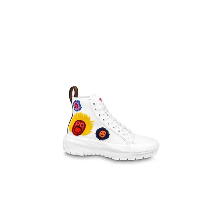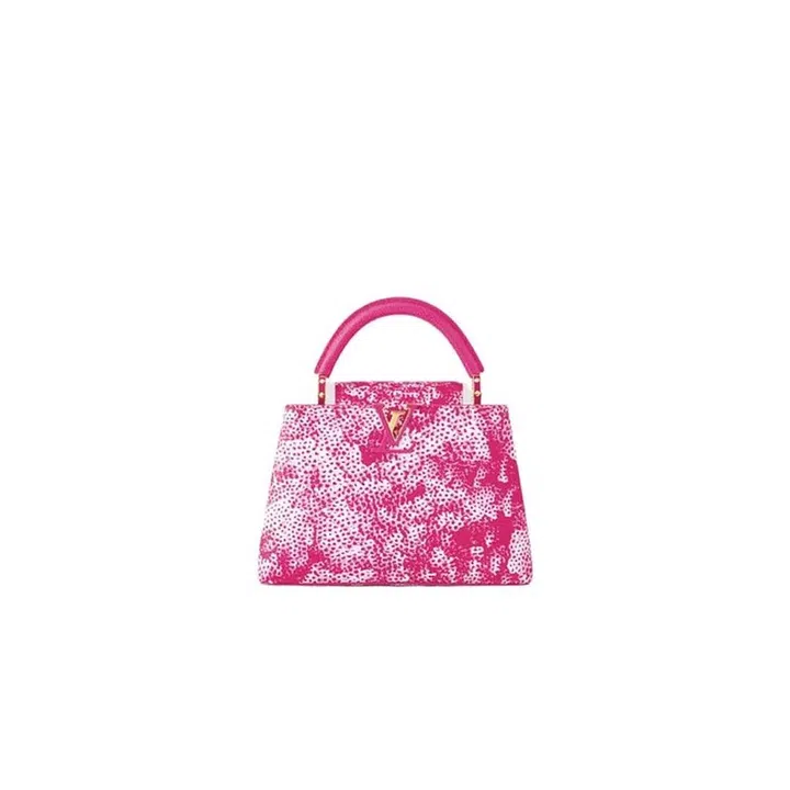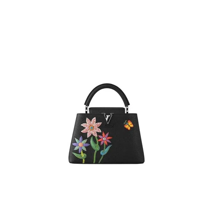 Flowers, a motif based on a painting that Kusama created in 2004, also finds its way into this second drop. The florals from that art work are translated into embroideries, appliques, vivid prints as well as leather marquetry pieces that are inlaid onto well-loved bag models such as the Capucuines top-handle bag and Speedy Boston bag.