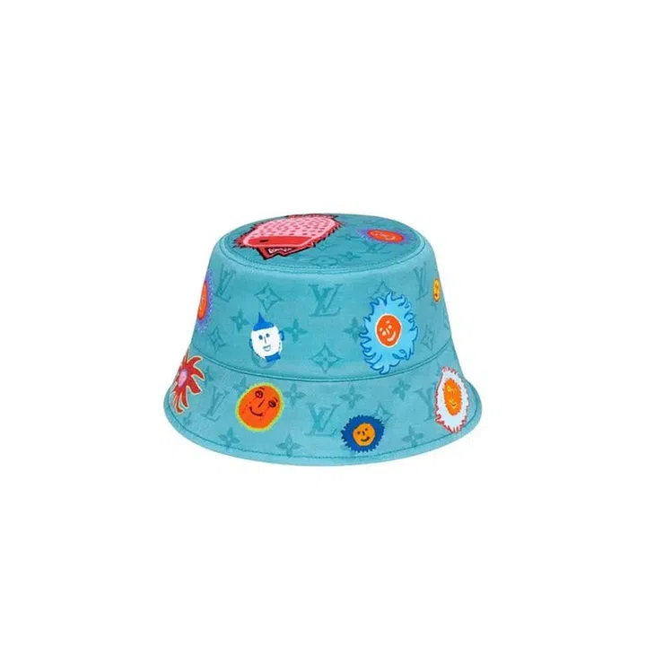 Then there is the Faces series. This line features doodle-like characters such as fish and maned creatures (above) that are derived from Kusama’s My Eternal Soul painting series she worked on from 2009. Rendered as embroidery and prints, some of the motifs from the paintings have been reimagined in a brilliant shade of Delphinium Blue – a new signature colour created for Louis Vuitton.