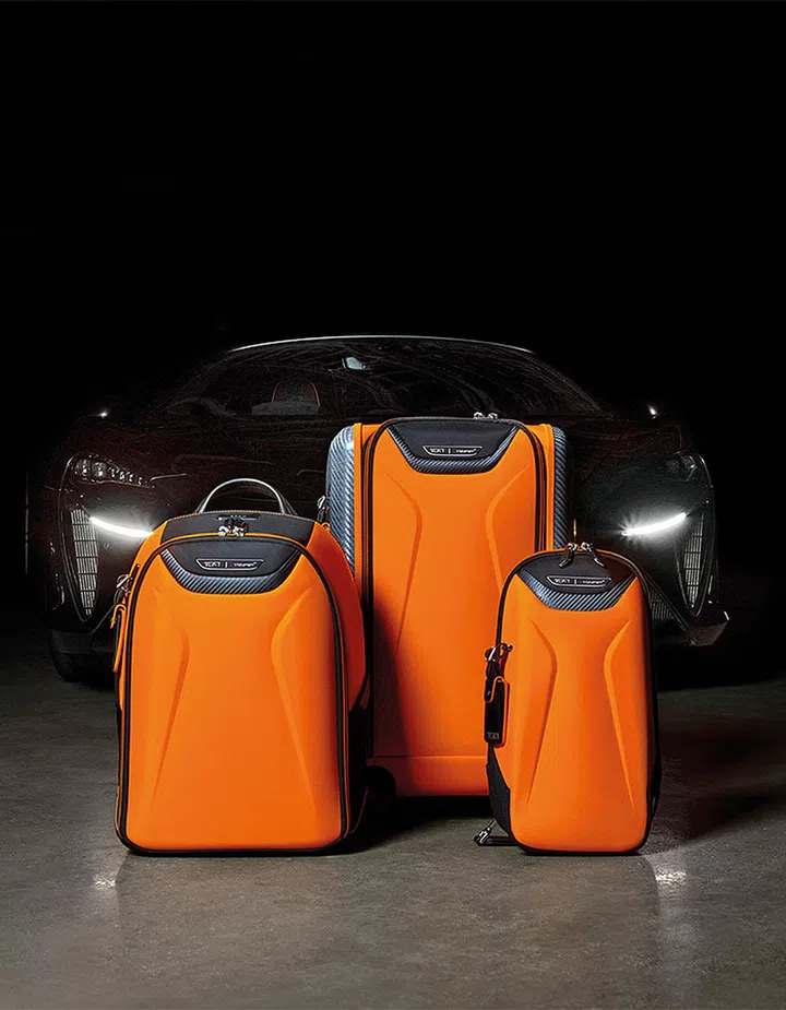 While Louis Vuitton’s latest Yayoi Kusama pieces focus on pumpkins, Tumi’s new collection marking McLaren’s 60th anniversary is distinguished by the papaya. More specifically, the papaya shade that is the signature of the supercar maker and its elite motorsports team.