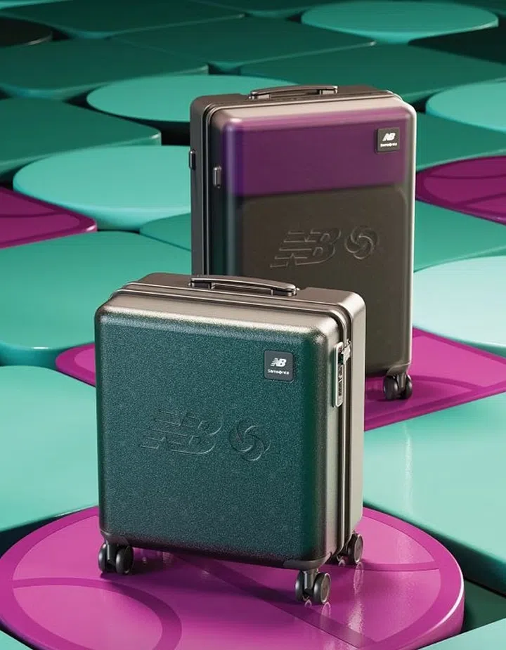 Aside from suitcases in two different sizes, the collection also features crossbody bags with a similar peekaboo aesthetic. There is a small crossbody bag as well as a larger one that — in an obvious nod to New Balance — can be used as stackable display cases for sneakers.