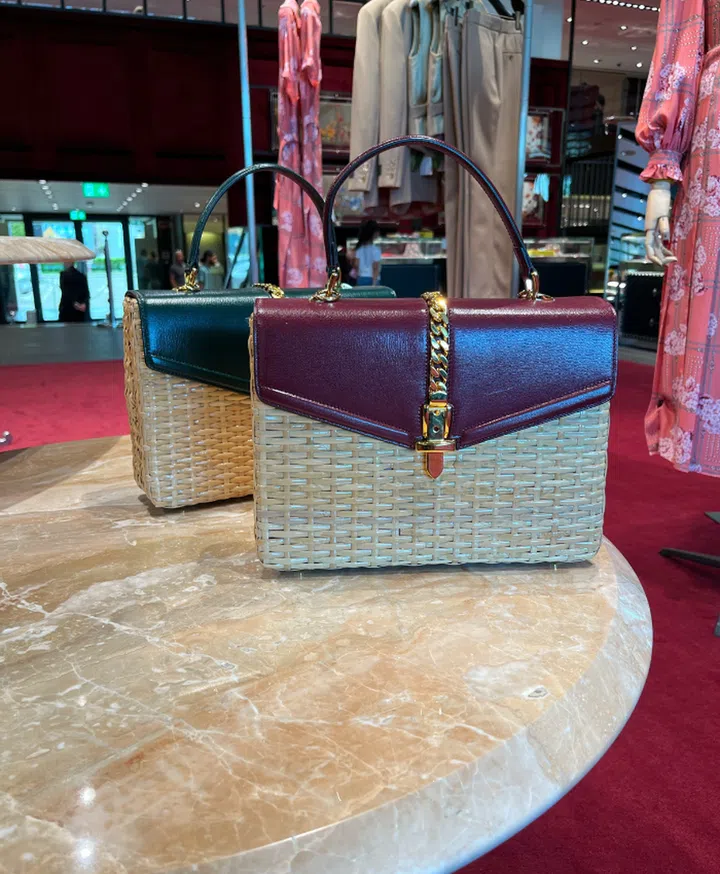 Do you love the look of rattan bags? This bag by Gucci takes it up a notch by including a leather flap, a gold-coloured clasp, and a comfortable handle that won’t make your hands itch while holding it. As I ran my hand over the rattan weaving, I was surprised by how smooth it felt. It also has a glossy finish that reflects the light and brings attention to it.