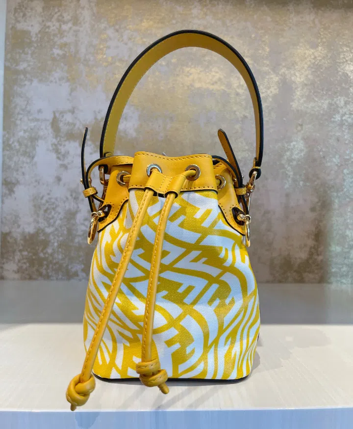 Want a bag with Fendi’s iconic design? This yellow one is eye-catching and unbelievably cute. It incorporates most of the elements seen in the two previous Fendi bags I’ve discussed, namely a drawstring closure and both a bag handle and a shoulder strap.