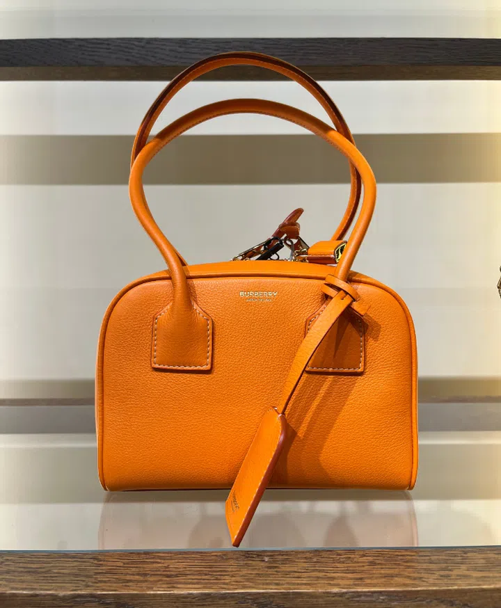 This flashy orange bag will add a pop of zest to your luxury bag collection. It has a grainy texture with the Burberry logo embossed on the front. There are two gold-coloured zips to fasten the bag shut and a leather-covered tag.