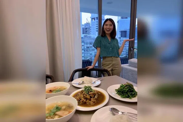Writer Amanda Chai with a meal cooked in-room as part of residence activities. Photo: Amanda Chai