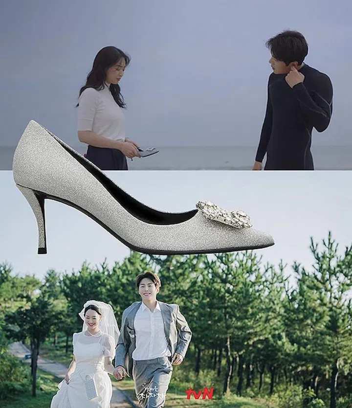 Shin Min-A wore many Roger Vivier designs in the drama, but the most important of them was this pair. This was a gift to herself for leaving her job and to signify that her road ahead will be smoother. This pair not only led her to Kim Seon-ho, but it also became her wedding shoes in the finale.