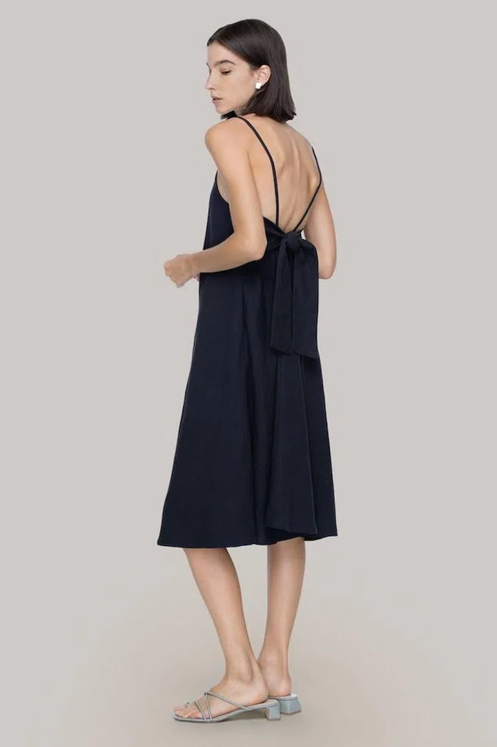 From the front, this midi dress looks like a simple strappy design with a straight neckline. Turn around, and reveal a shoulder-baring open back that’s equal parts stylish and breathable. Finish the look with a clutch and slingback heels.