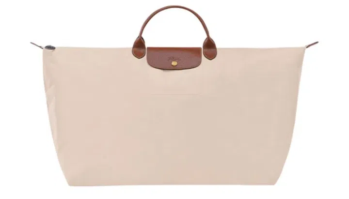 The Le Pliage bag is a core product of the Longchamp brand. While it’s technically not a duffel, the extra-roomy travel size is easily adaptable as a weekend bag for short trips. Alternatively, the collapsible bag can be stashed into your luggage for added space to bring all your shopping home. The lightweight polyamide composition of the bag is easy to clean and maintain with a wet cloth.