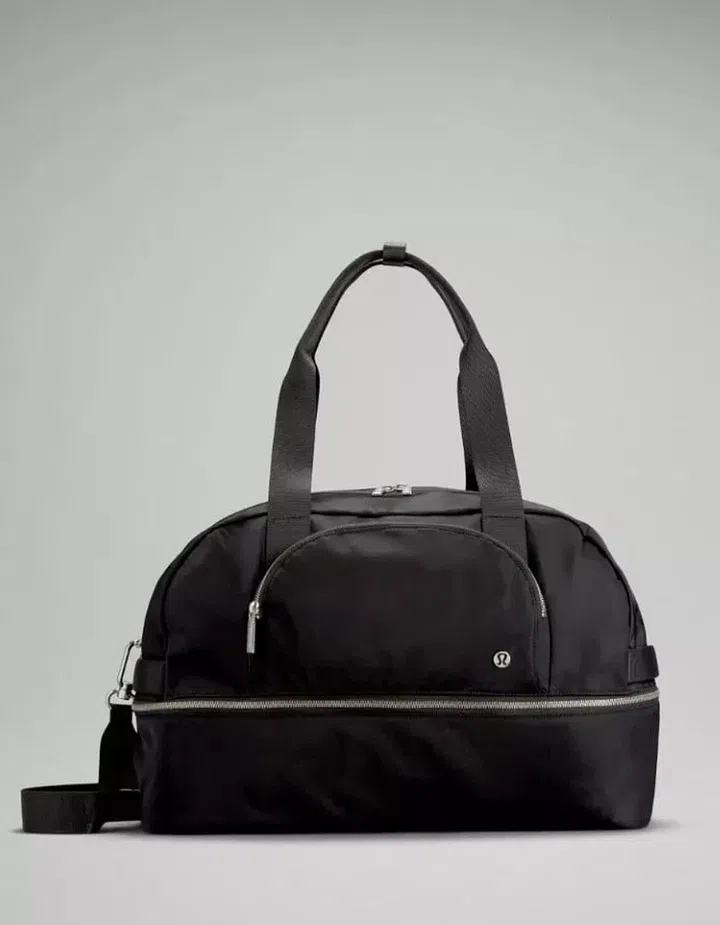 The Lululemon duffle bag easily helps you transition from the gym to work, and from work straight to vacation. The top handle design has a detachable strap to transform it into a shoulder or crossbody bag, which comes in super handy when it gets too heavy. It’s also constructed with nylon and polyester, making it both lightweight and easy to clean.