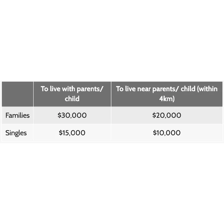 If you’re buying a resale flat within a 4km radius of your parents or planning to move in with your parents, you will be eligible for the PHG which entitles you to a grant amount of S$10,000 or S$30,000. The resale flat that you’re purchasing also has to have at least 20 years remaining on its lease.