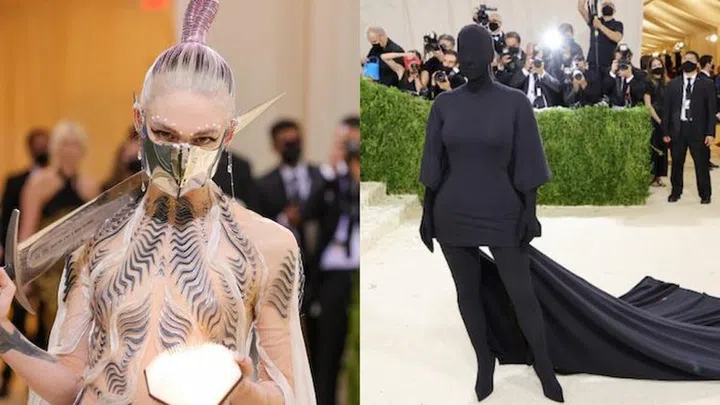 Singer Grimes made hers a spectacularly eye-catching part of her Dune-inspired get-up, while Kim Kardashian took “face covering” literally by turning up in a Balenciaga ensemble that covered her entire head.