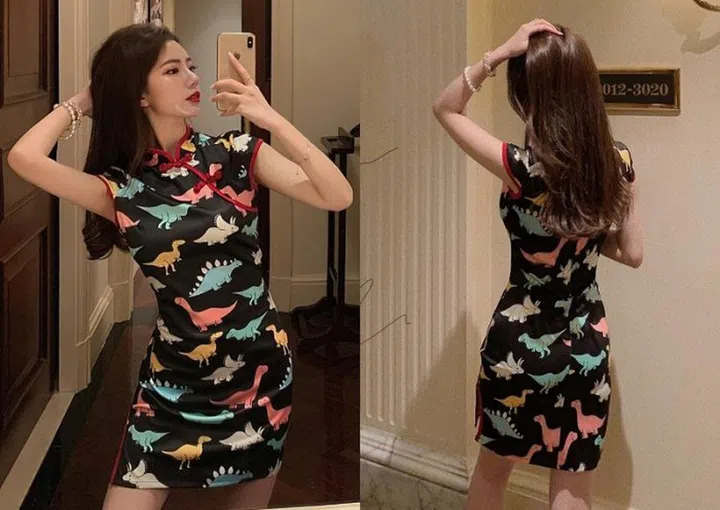 Instead of the traditional colours and prints, this quirky piece is plastered in adorable images of dinosaurs of different shapes, sizes and colours. If you aren't a fan of the typical cheongsam and want something more fun, this is definitely a good option.