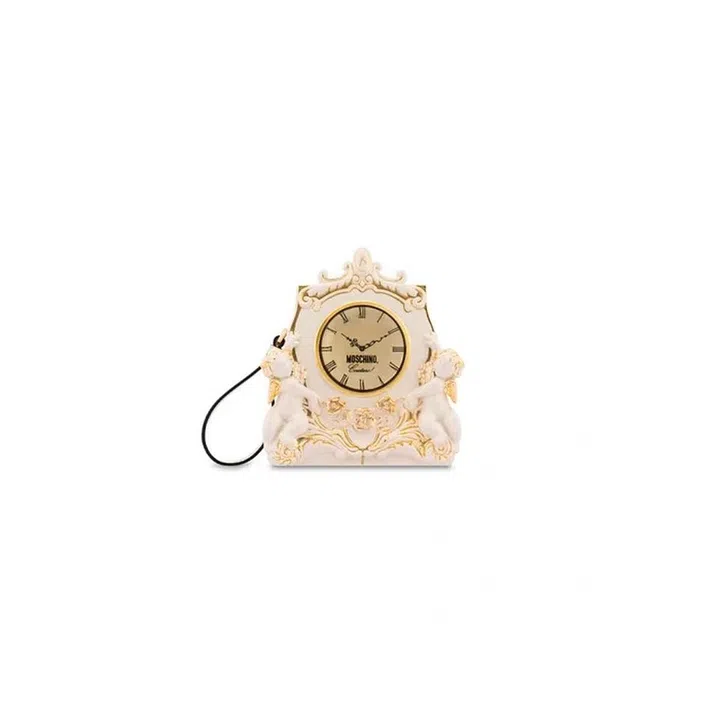Recently, the luxurious, extravagant aesthetics used for jewellery and accessories have been fading in favour of the weird and wonderful. While brands like Judith Leiber, Schiaparelli and Olympia Le-Tan have been crafting kooky novelty bags for decades, the current popularity of these attention-grabbing designs is worth noting. Clock Moschino Fall/Winter 2022 show where lamp shades became headwear, grandfather clocks informed bag designs and champagne buckets became literal arm candy.