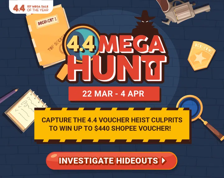 From now till April 2, 2021, head to Shopee's microsite to play an interactive game where you uncover the five true culprits who stole all of Shopee’s 4.4 vouchers from the Shopee vault — and stand a chance to win Shopee Vouchers worth up to $440.