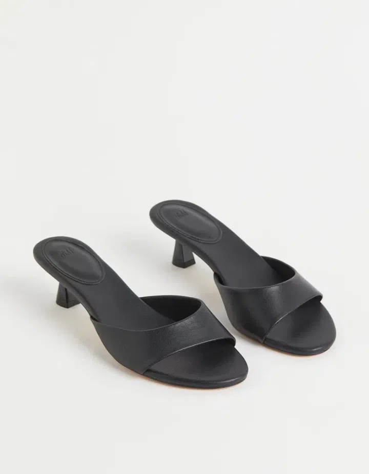 Need to dash into a last-minute meeting? Leave these open-toe mules underneath your desk for that five-second spruce up.