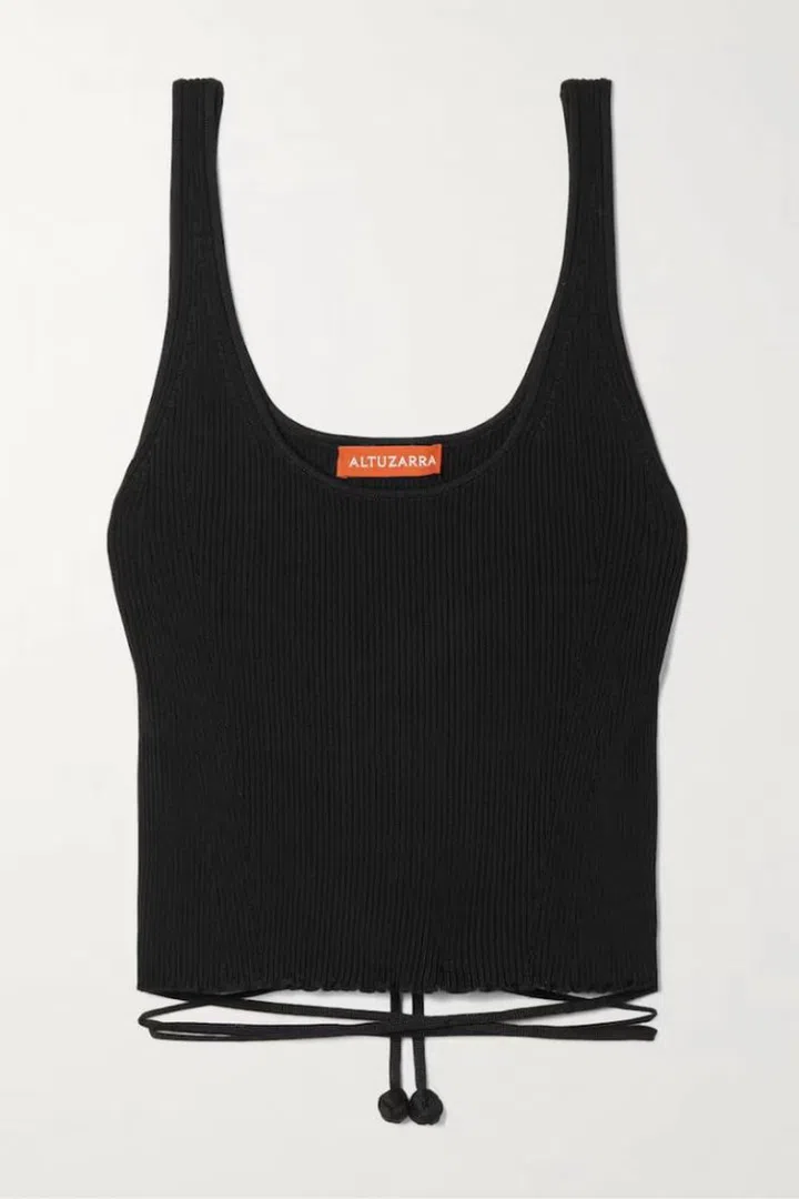 Denim-on-denim is a classic combination that gets an instant dose of sexiness when paired with a crop top. Stars like Gigi and Bella Hadid are known for wearing this exact outfitMaia Cropped Ribbed-Knit Tank, $660, Altuzarra at Net-a-Porter, so don’t be afraid to channel your inner model the next time you leave the house.
