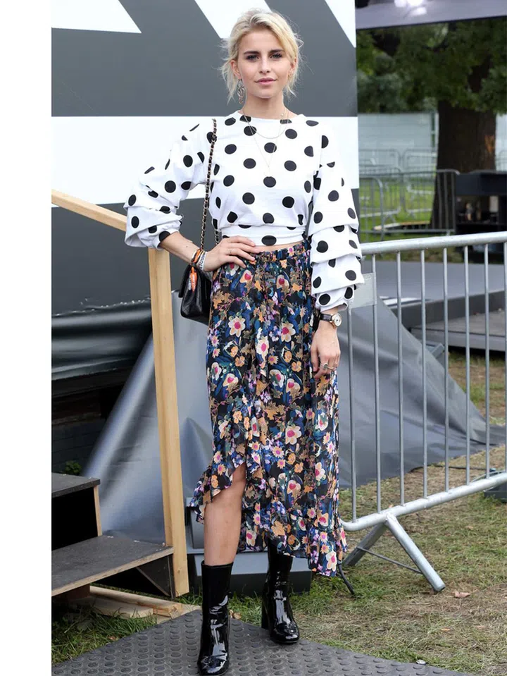 In your 20s and 30s, basic crop tops might not speak to your soul as much as ones with prints and ruffles do. Such details take your shirt game to the next level. (That level: sophistication.) Take a cue from style influencer Caroline Daur and rock contrasting top and bottom prints.