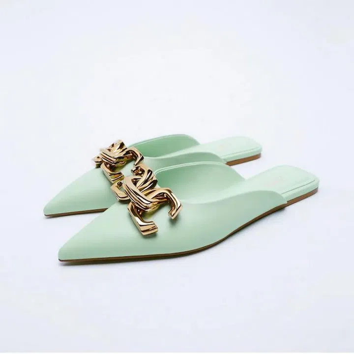 If you’re not a lover of height when you’re at the office but still want to keep your feet looking pretty, get a pedi and show off your toes in these low-lying Zara mules.