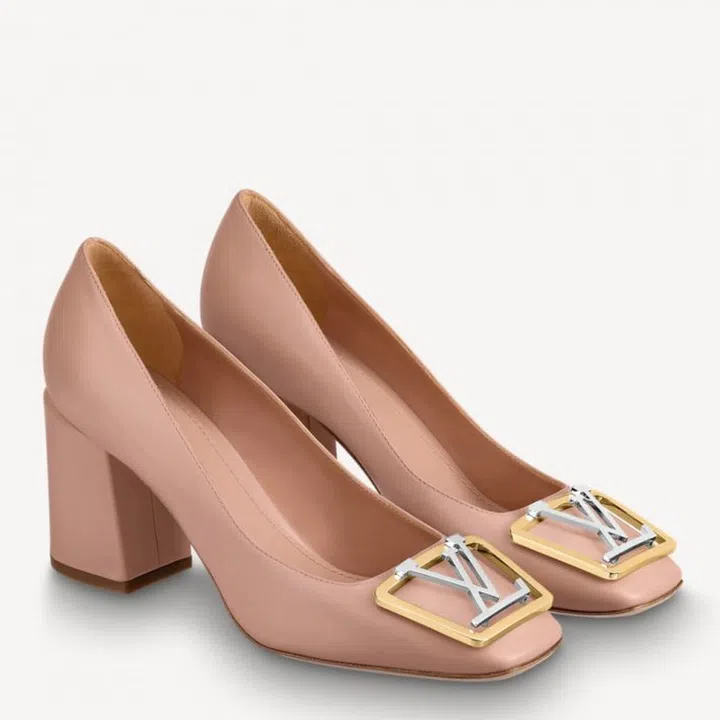 Crafted from supple calf leather, the Madeleine pump is easily recognisable by its retro-look block heel and square toe that is embellished with the LV initials in silver and gold-coloured metal.