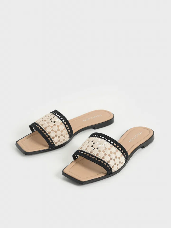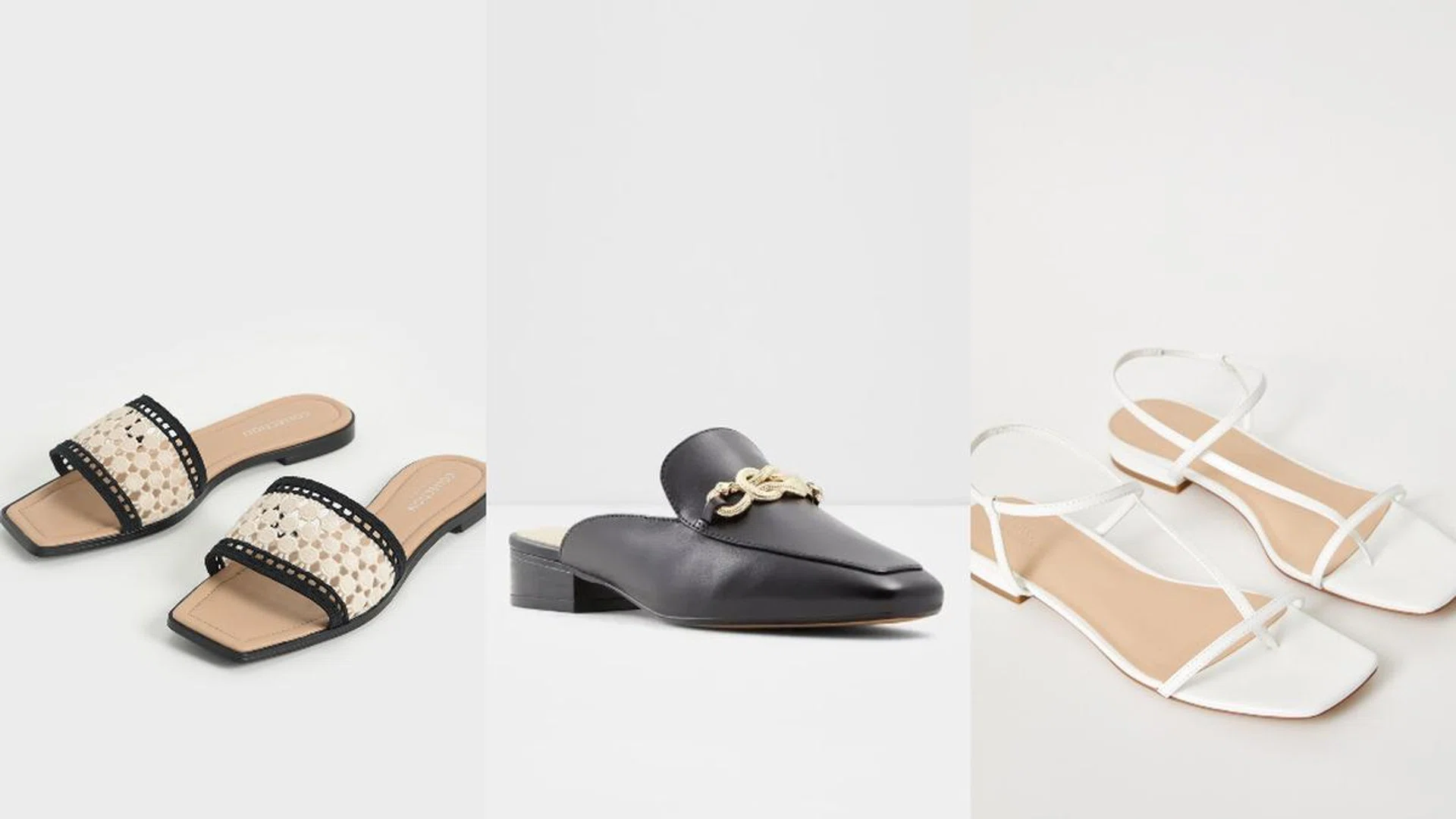 A simple pair of flats is easily upgraded by Charles & Keith with the crochet detailing and the black and white contrast. Pair this with a loose-fitting shirt and slip skirt.
