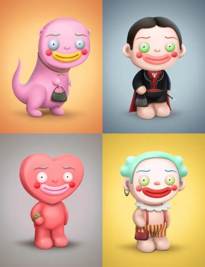 The NFT artworks he is most proud of: “Here are just three out of many that I’ve picked out simply because of how they look and their little stories. Mister Philips (bottom left) is known for two things, his gold watch and his quest to find love, although his heart is broken 99 per cent of the time. Jacky (bottom right) is a depressed clown who does the opening act for The Magician (top right). And Darney (top left) is a dinosaur-alien hybrid that carries around a human bag. Most believe that he got the bag from devouring the human.”