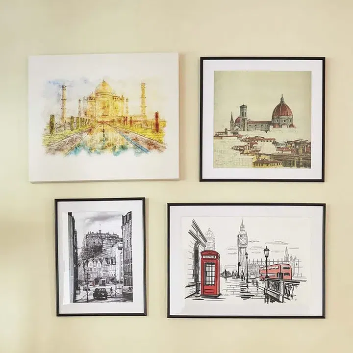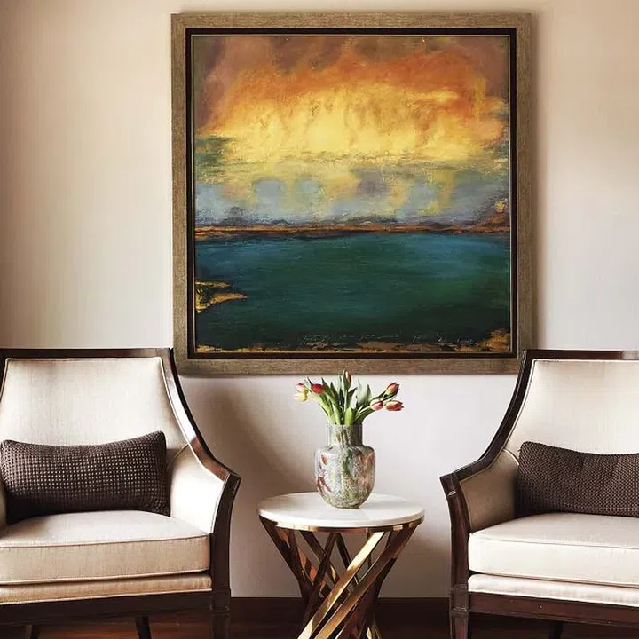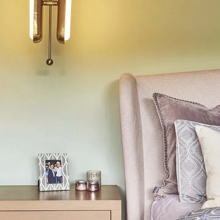 Meanwhile, the guest bedroom draws its colour palette from a pair of artworks depicting sunrise and sunset in Santorini.