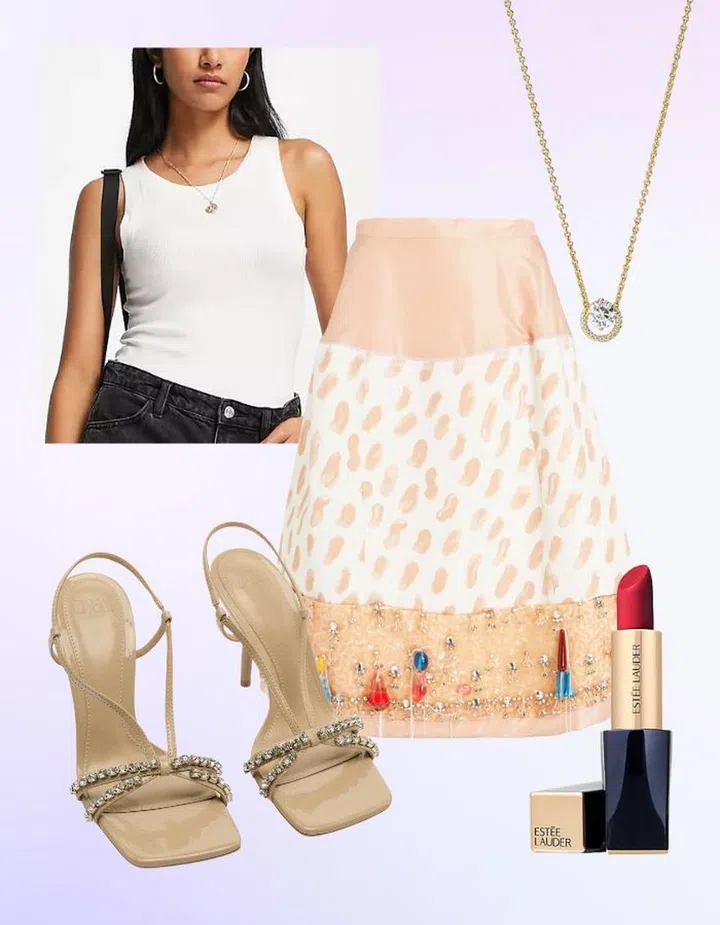 Similarly, we found this gorgeous embellished skirt from Marni to set you up for a classy evening out. It may come at a slightly higher price tag, but the craftsmanship on this piece makes it wholly worth every cent. Finish off your look with a statement red lip and party heels!