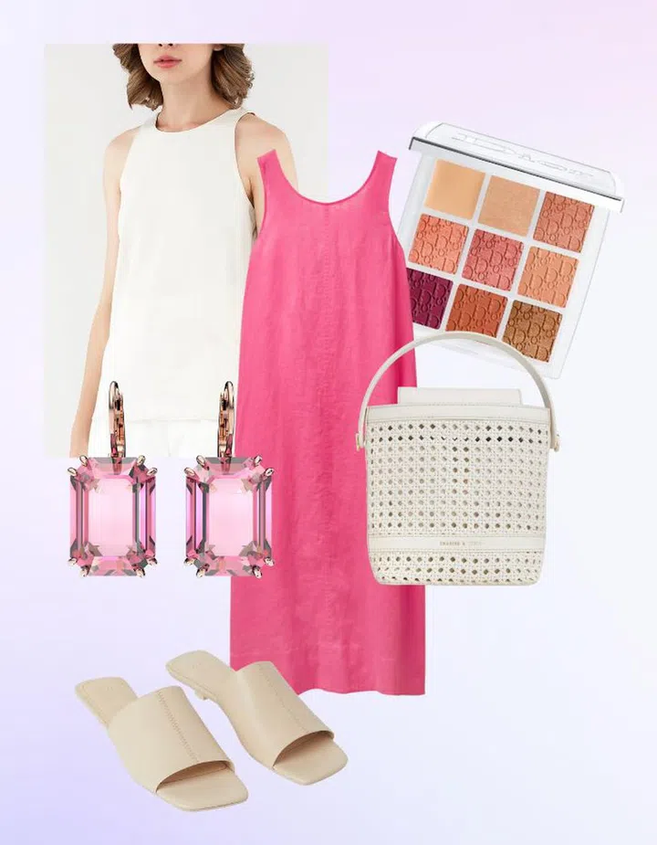 Unlike Jil Sander’s look, we opted to go a step further with the remixing, and pump up the colour by choosing a hot pink sleeveless dress! It’s a fabulous and fuss-free way to look more dressed up for casual occasions. Play up that casually chic look with an adorable bucket bag and kitten heels.