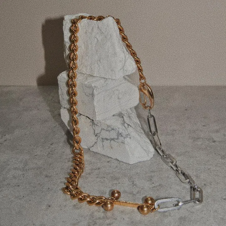 She uses unexpected daily hardware that is largely seen in the garment industry for her jewellery (such as tarnish-free 304 stainless steel and aluminium, suede, and leather), and you don't have to worry about them weighing you down — they're chunky but surprisingly lightweight.