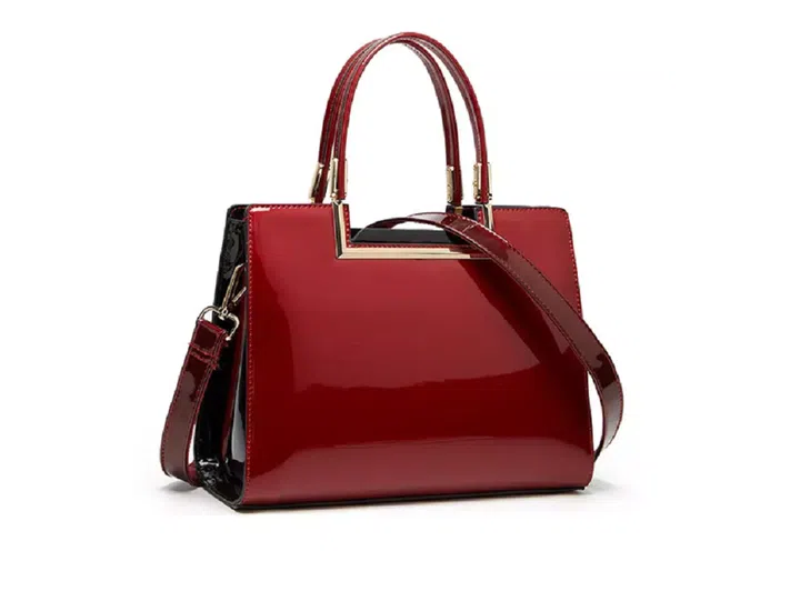 For an accessory that'll grab attention, look no further than this crimson bag in high-shine patent leather. There are various compartments too, including a gusseted zip pocket, a mobile phone pocket and an inner slot pocket.
